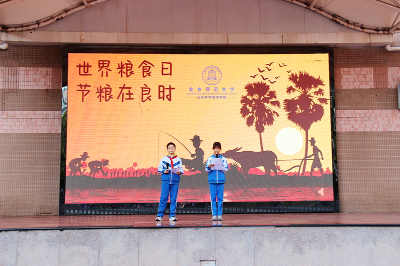 2025年10月13日,在世界粮食日来临之际,北京师范大学三帆中学朝阳学校“世界粮食日,节粮在良时”升旗仪式主题课程。