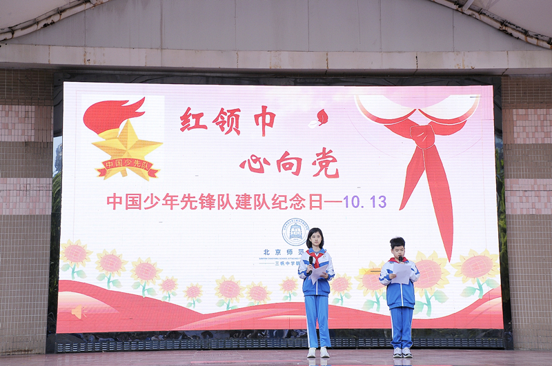 来自六年级4班的学生学生代表,用精彩的言语为全体师生呈现了主题演讲。同时,同学们用激扬的言语庆祝了中国少年先锋队建队76周年纪念日。