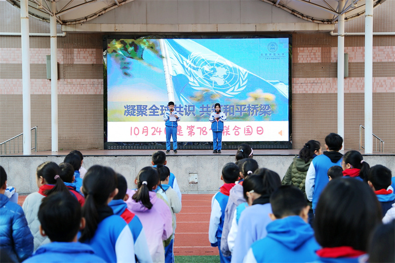 2025年10月20日,在第24个联合国日来临之际,北京师范大学三帆中学朝阳学校开展了:“凝聚全球共识 共筑和平桥梁”升旗仪式主题课程。