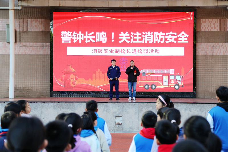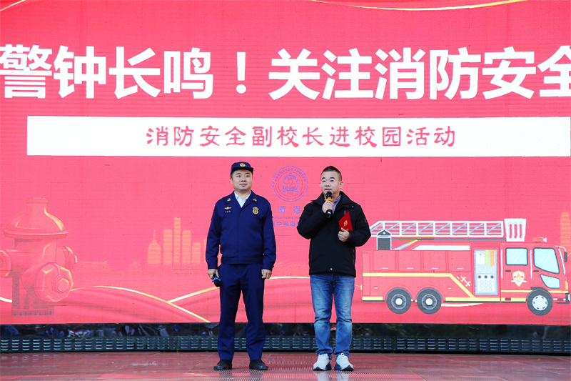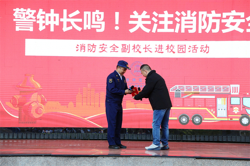 国旗下讲话后,校领导为亚运村消防队副队长颁发了我校消防副校长聘书,同时消防副校长为同学们带来了消防安全知识讲座。(供稿 学生处)