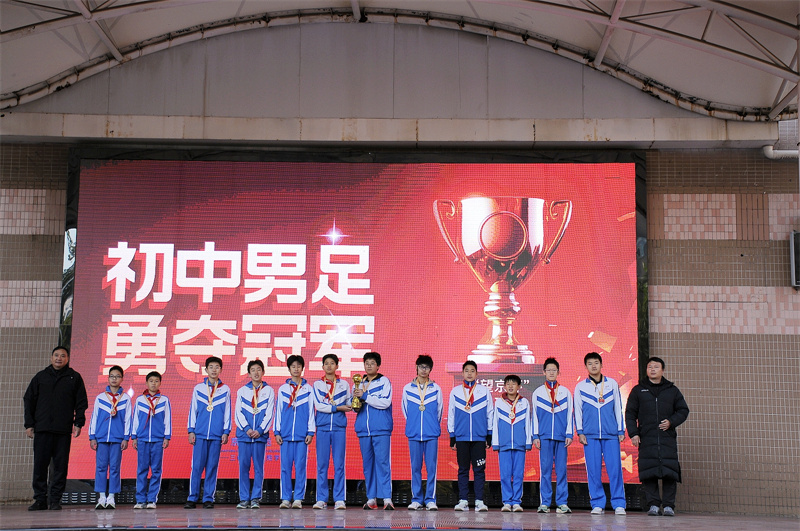 最后,校领导为获得第二届“望京杯”足球赛冠军的同学们颁奖!(供稿 学生处)