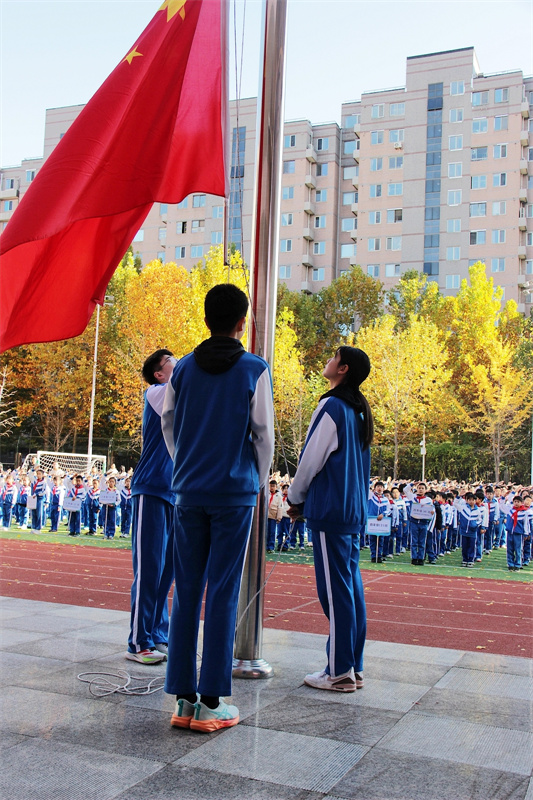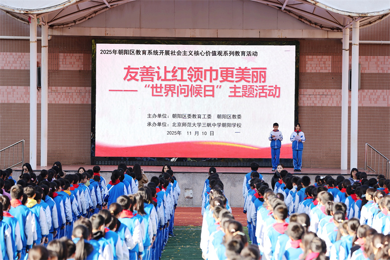 2025年11月10日,北京师范大学三帆中学朝阳学校结合升旗仪式举行“友善让红领巾更美丽” 社会主义核心价值观主题教育活动,全校师生以真诚与热情诠释友善的真谛,让德育之花绽放在校园每个角落。