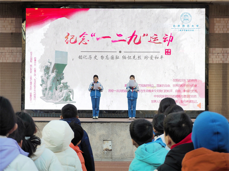 2025年12月8日,北京师范大学三帆中学朝阳学校开展了丰富多彩的升旗仪式主题课程,来自六年级6班的学生代表用精彩的言语为全校师生呈现了“纪念一二九运动 弘扬爱国主义精神”宪法日主题演讲。