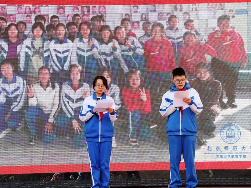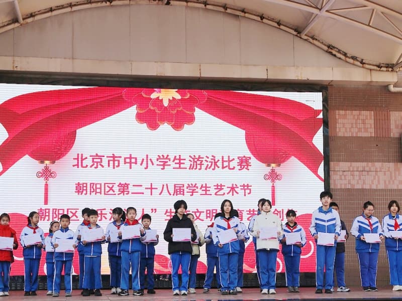 2026年3月9日,北京师范大学三帆中学朝阳学校开展了丰富多彩的升旗仪式主题课程,全校师生观看了《中国精神》主题宣传片,来自七年级1班的学生代表用精彩的言语为全校师生呈现了“植树节”和“填仓节”主题演讲。最后,校领导为获得游泳比赛、区艺术节获奖的同学们颁奖。(供稿 学生处)