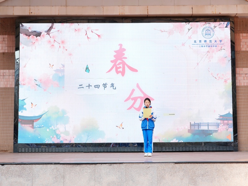 2026年3月16日,北京师范大学三帆中学朝阳学校开展了丰富多彩的升旗仪式主题课程,来自七年级1班的学生代表用精彩的言语为全校师生呈现了“二月二、春分时节新气象”主题演讲!